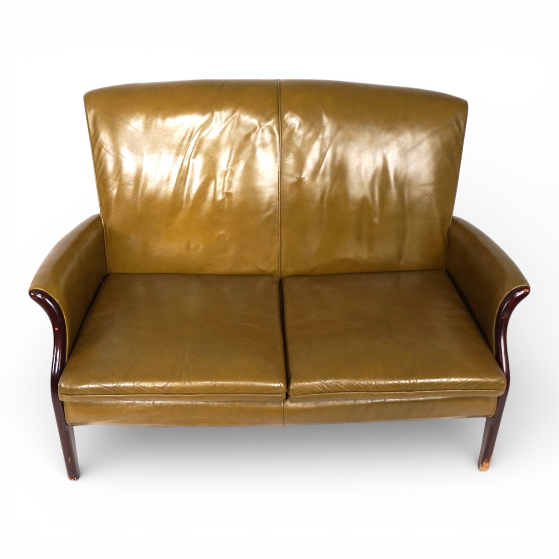 Moosgrünes Froxfield Ledersofa Zweisitzer von Parker Knoll, 1960