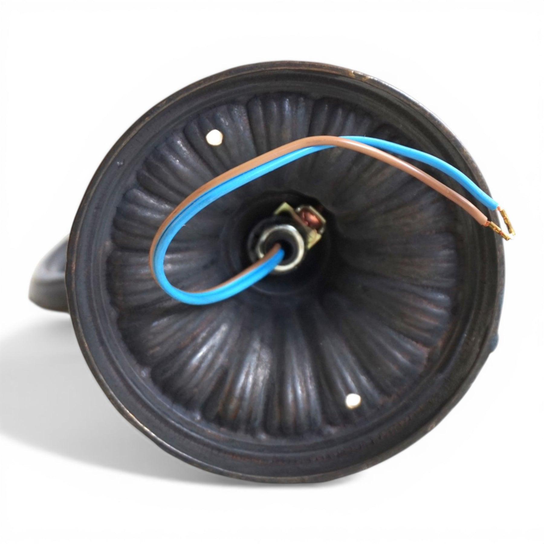 Dieses schöne Lampenpaar im eleganten Jugendstil (Art Nouveau) vereint kunstvolle Gestaltung mit hochwertiger Verarbeitung und zeitloser Ästhetik. Gefertigt aus massivem Messing, begeistern die Leuchten durch ihren warmen, tiefbraunen Farbton, der die geschwungenen Formen besonders edel zur Geltung bringt. Der filigran gearbeitete Wandhalter zeigt ein harmonisches, florales Muster mit fließenden Linien – typisch für den Jugendstil – und verleiht den Lampen eine lebendige, fast organische Anmutung.