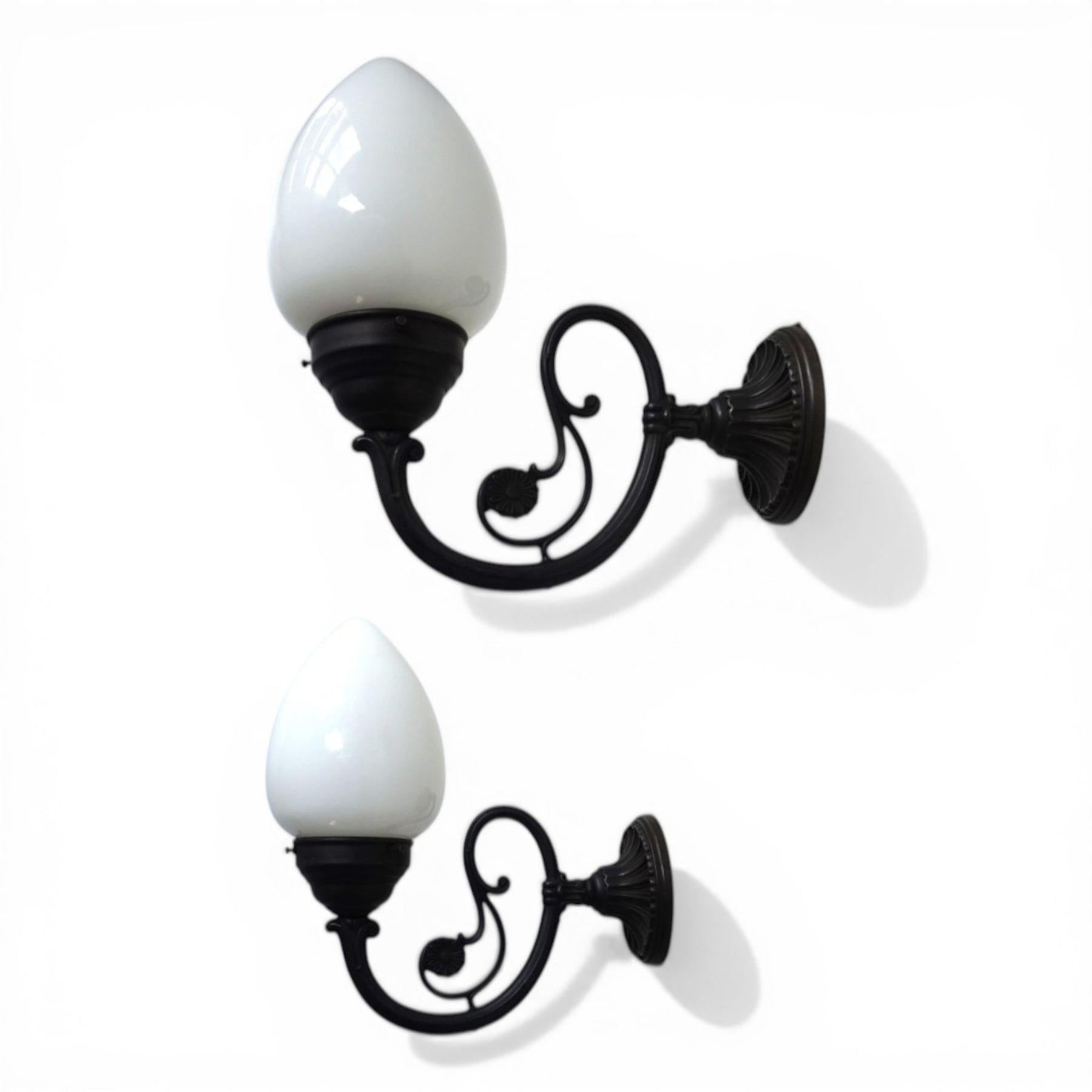 Insgesamt präsentieren sich die Leuchten in einem exzellenten Zustand und sind nicht nur funktionale Lichtquellen, sondern zugleich dekorative Kunstobjekte. Dieses stilvolle Paar eignet sich hervorragend, um Wohnräume, Flure oder auch repräsentative Bereiche mit einem Hauch klassischer Eleganz und kunsthistorischem Flair zu bereichern.