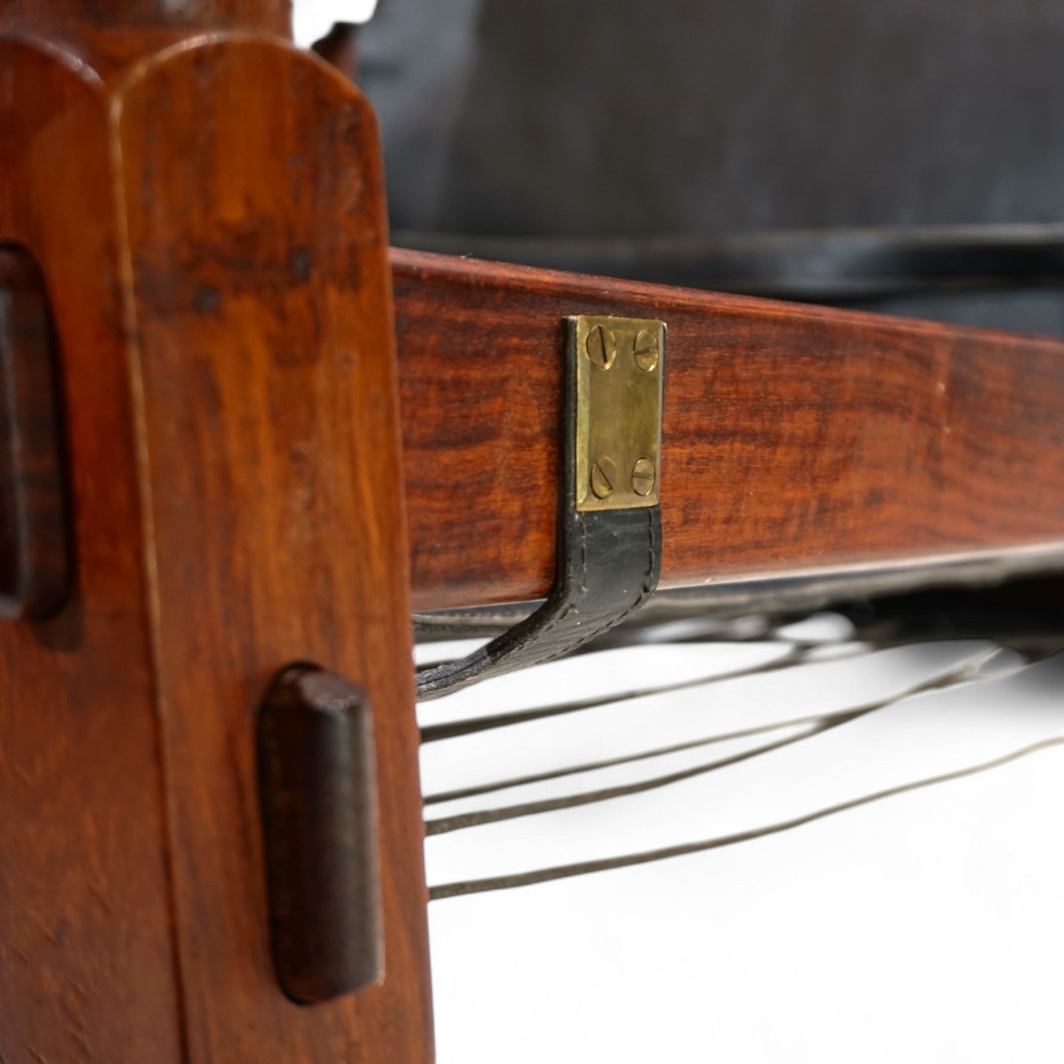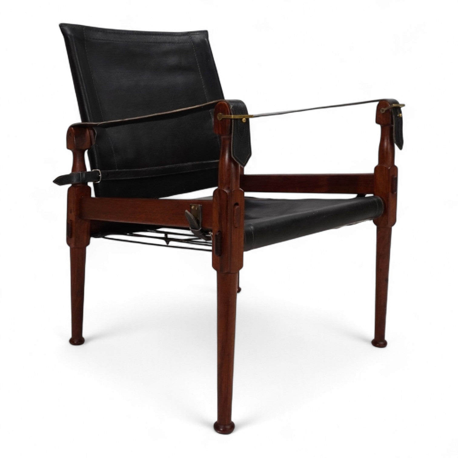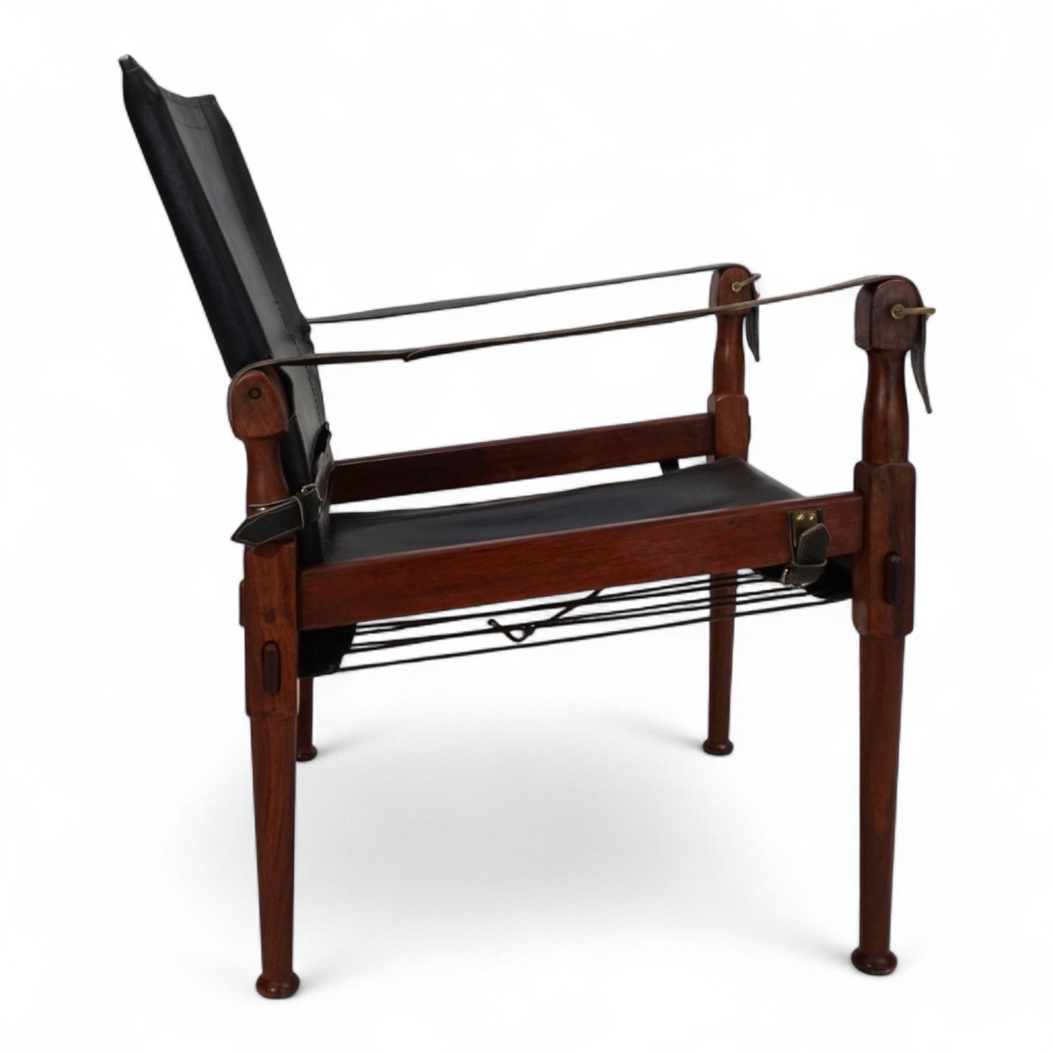 The Safari Roorkee chair was designed in 1933 by Hayat Brothers in Pakistan for British officials and used on safaris. Hayat developed a model that was quick to disassemble, yet stable and comfortable. High-quality materials such as rosewood, mahogany, or teak, and the finest leather were used.