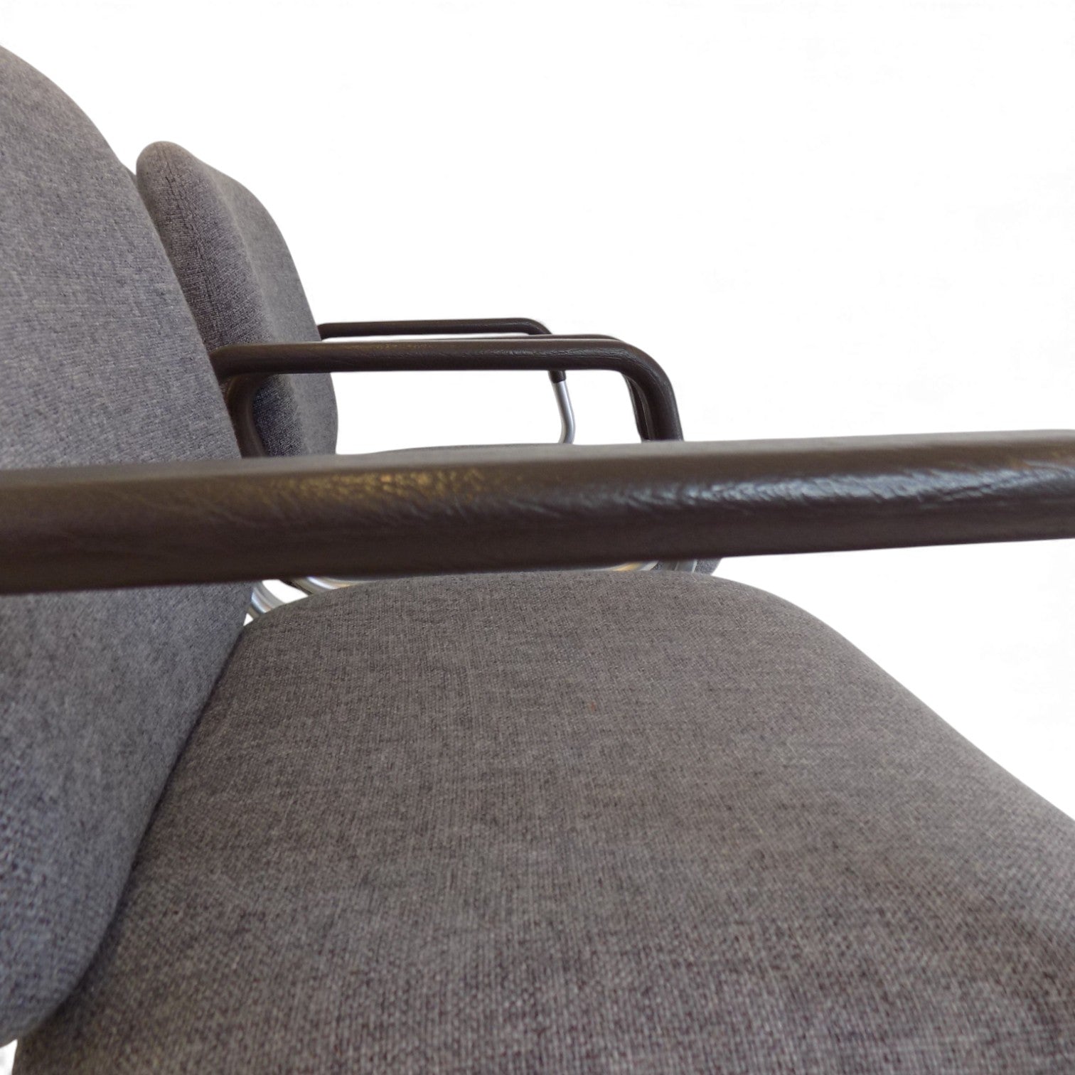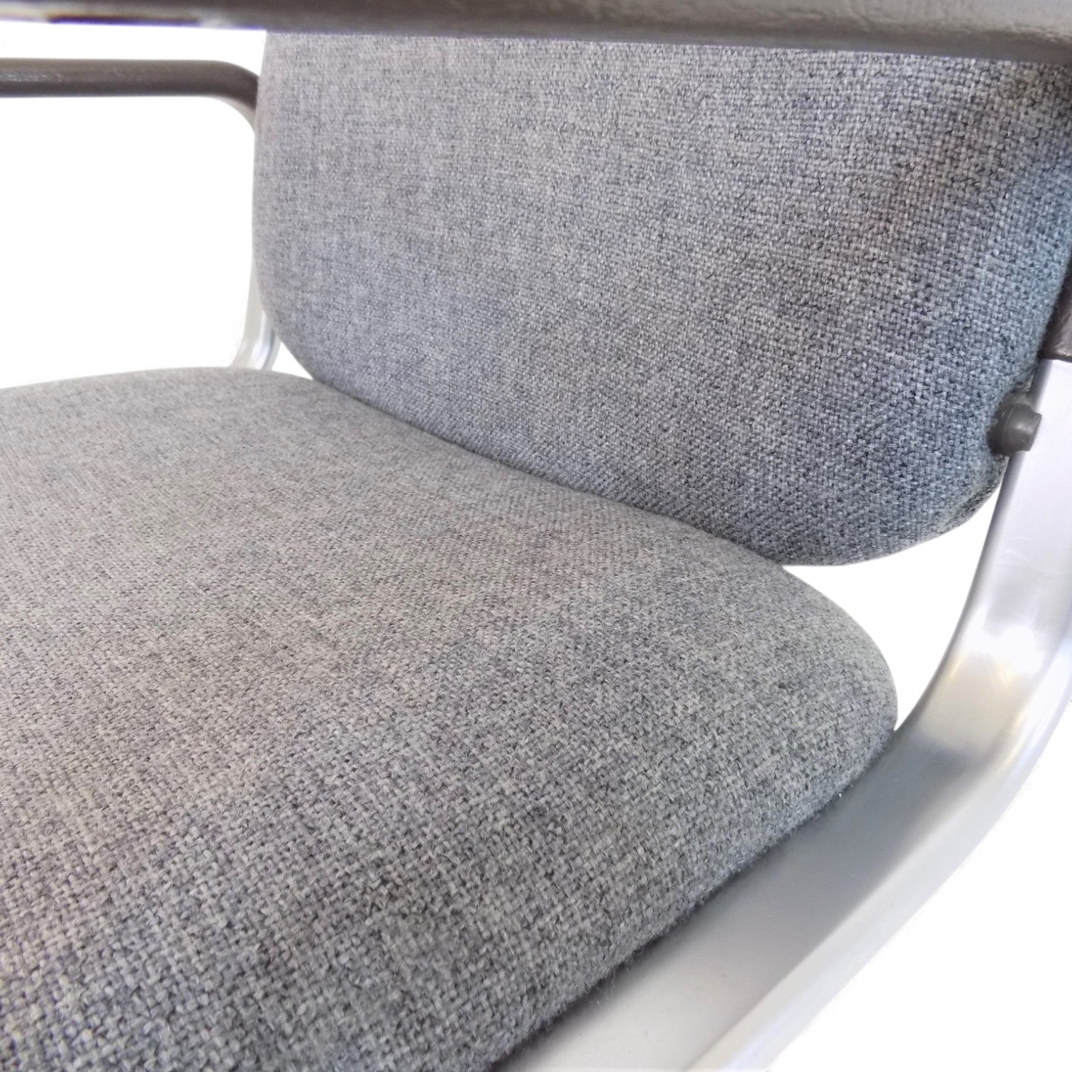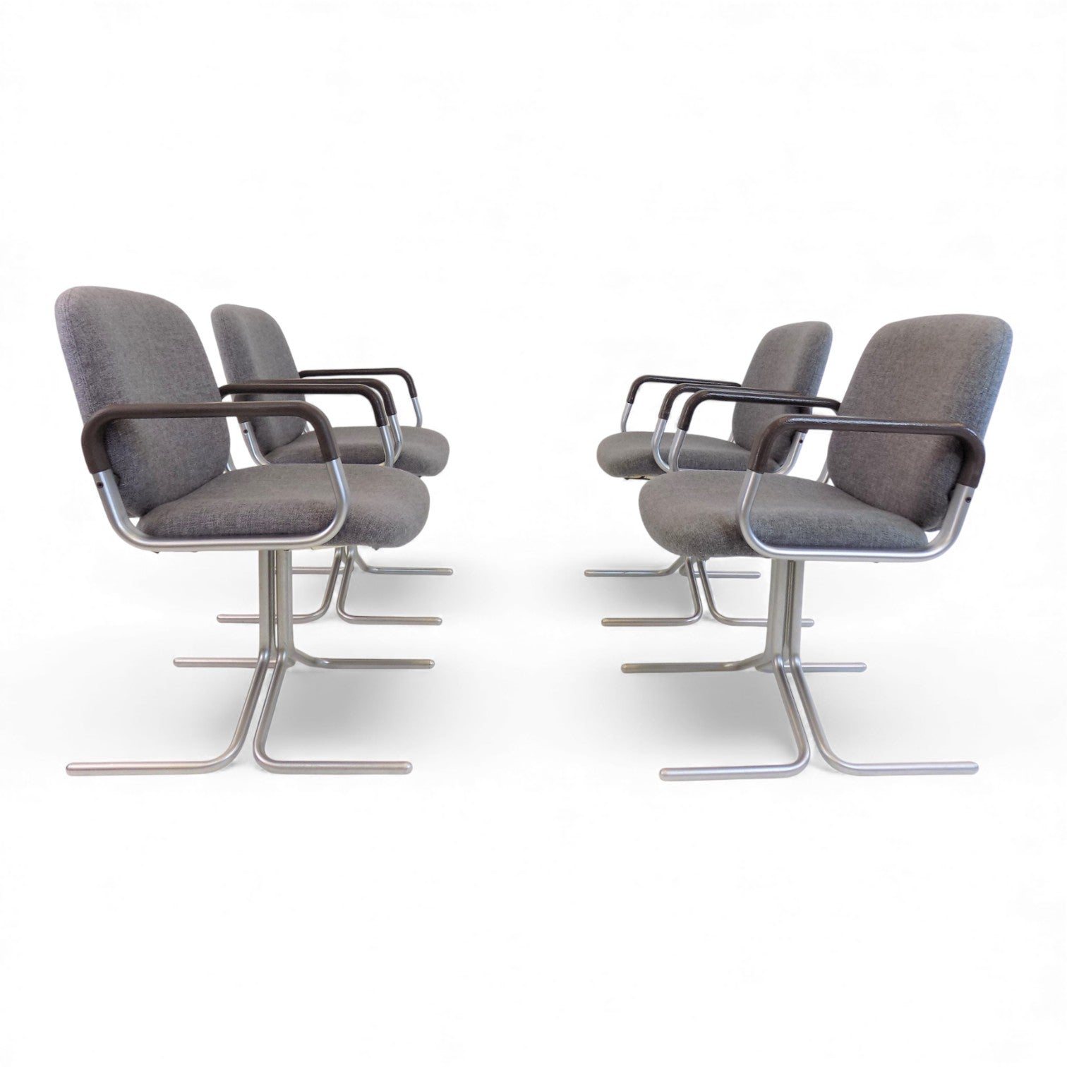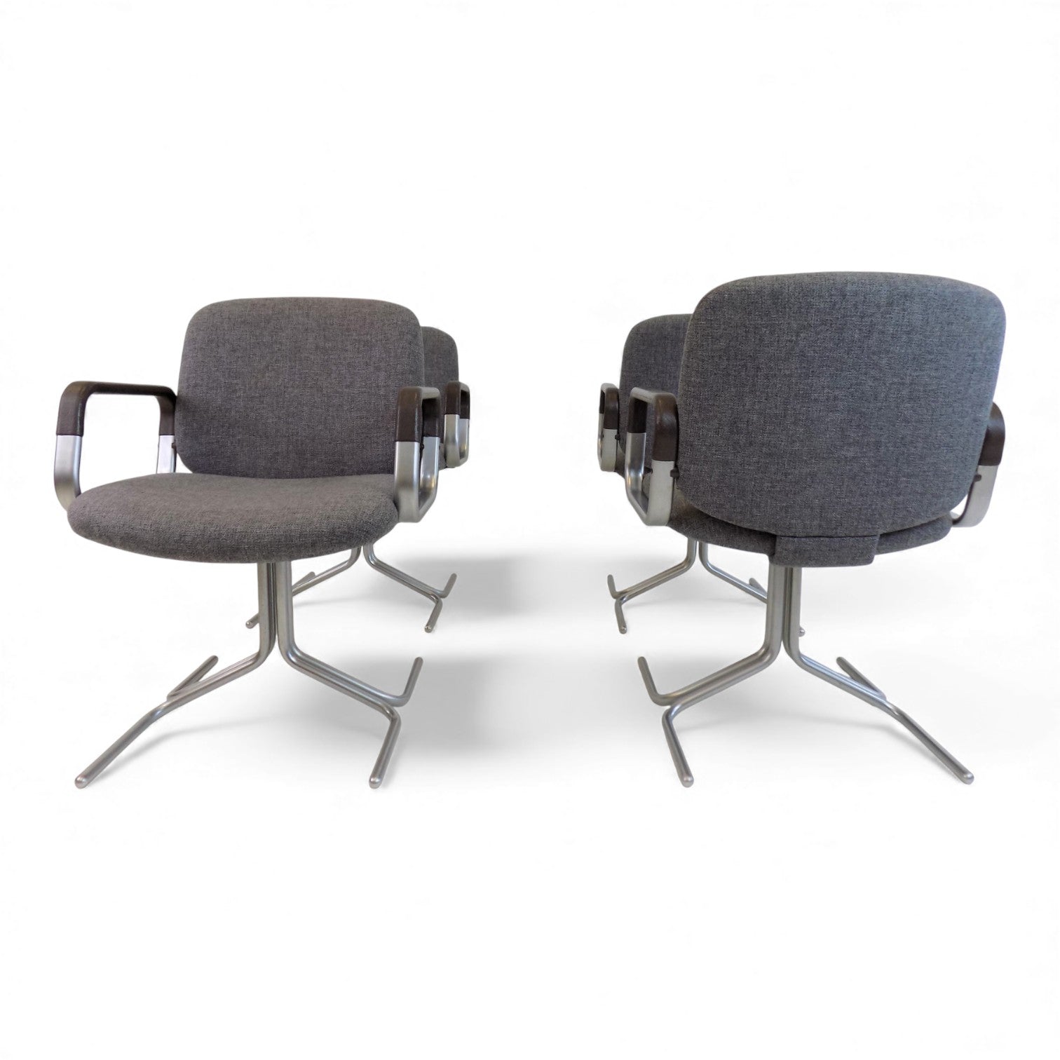 An exceptionally well-preserved set of four Seat 150 conference chairs, which can also be used as dining chairs. The grey fabric upholstery is in excellent condition, as are the metal legs. These chairs feature the rare option of armrests. A true collector's item.