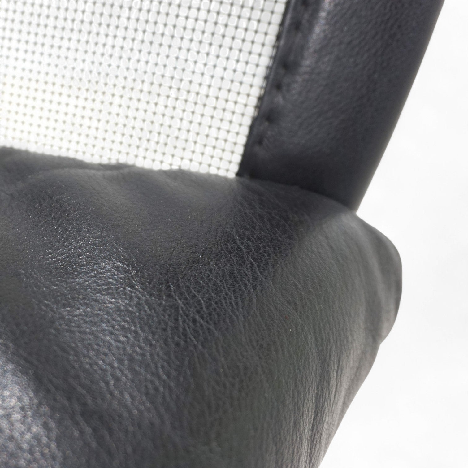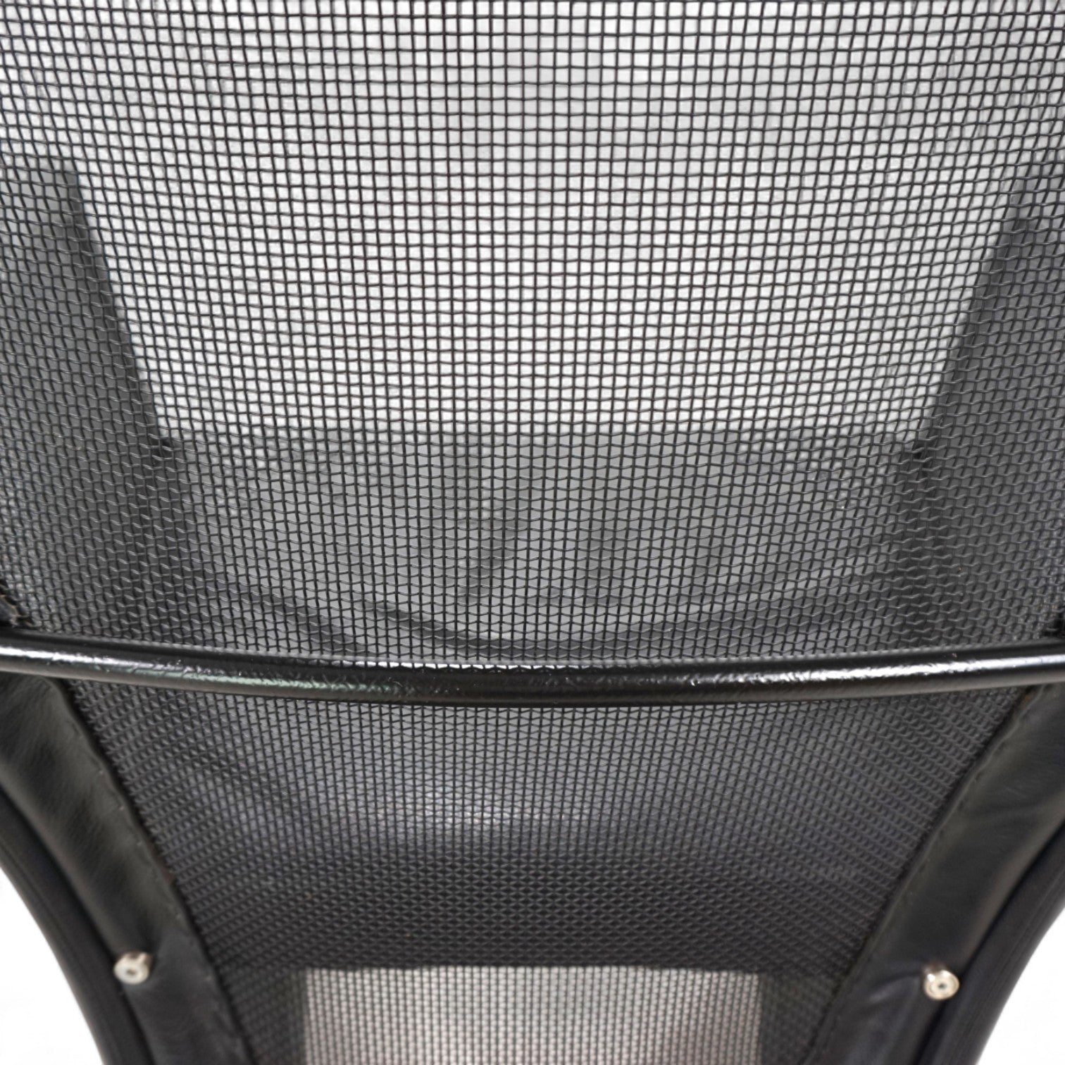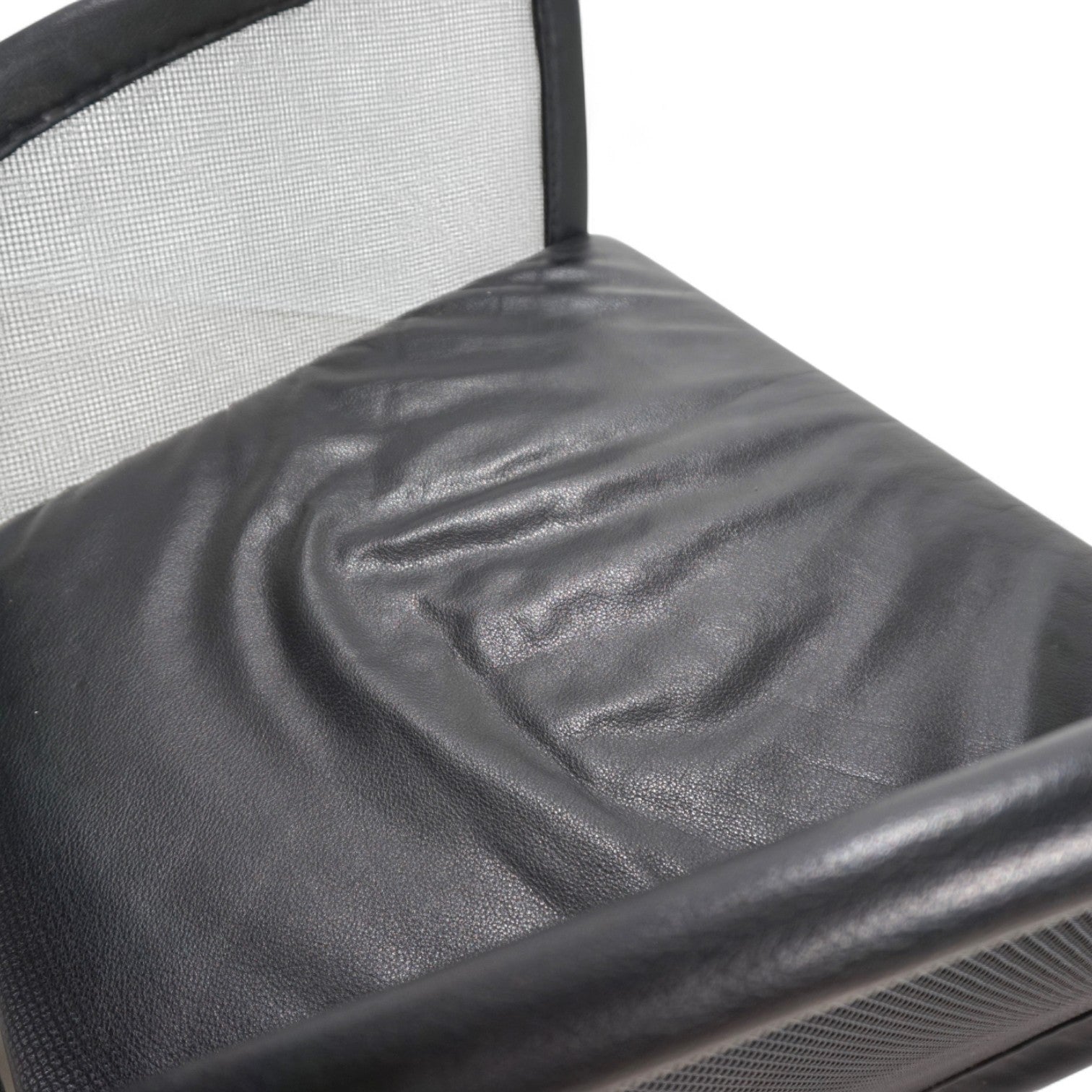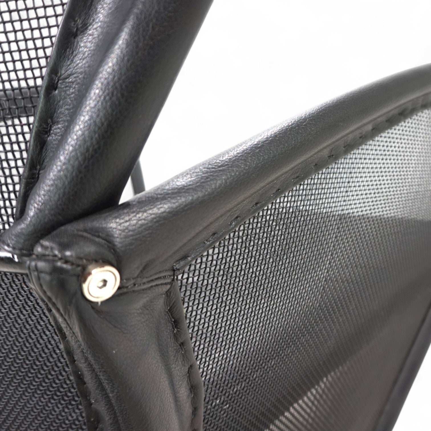 A Prive armchair with black metal weave and black leather trim in excellent condition. The armchair shows only minimal signs of wear. The black plastic-coated metal weave is firm, and the black leather seat and leather trim are flawless. The impressive dimensions and dynamic lines of this armchair make it a work of art in any room. The armchair exudes postmodernism in every inch.