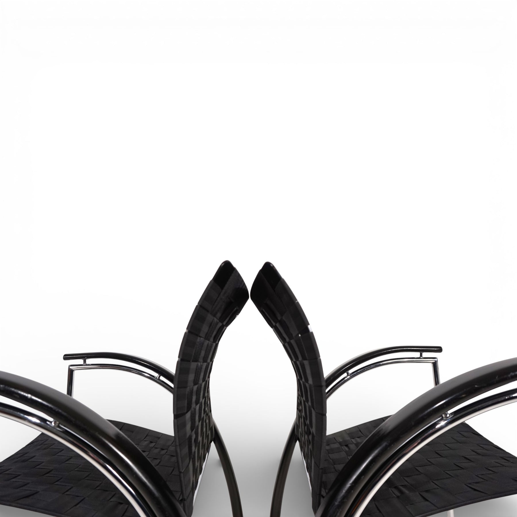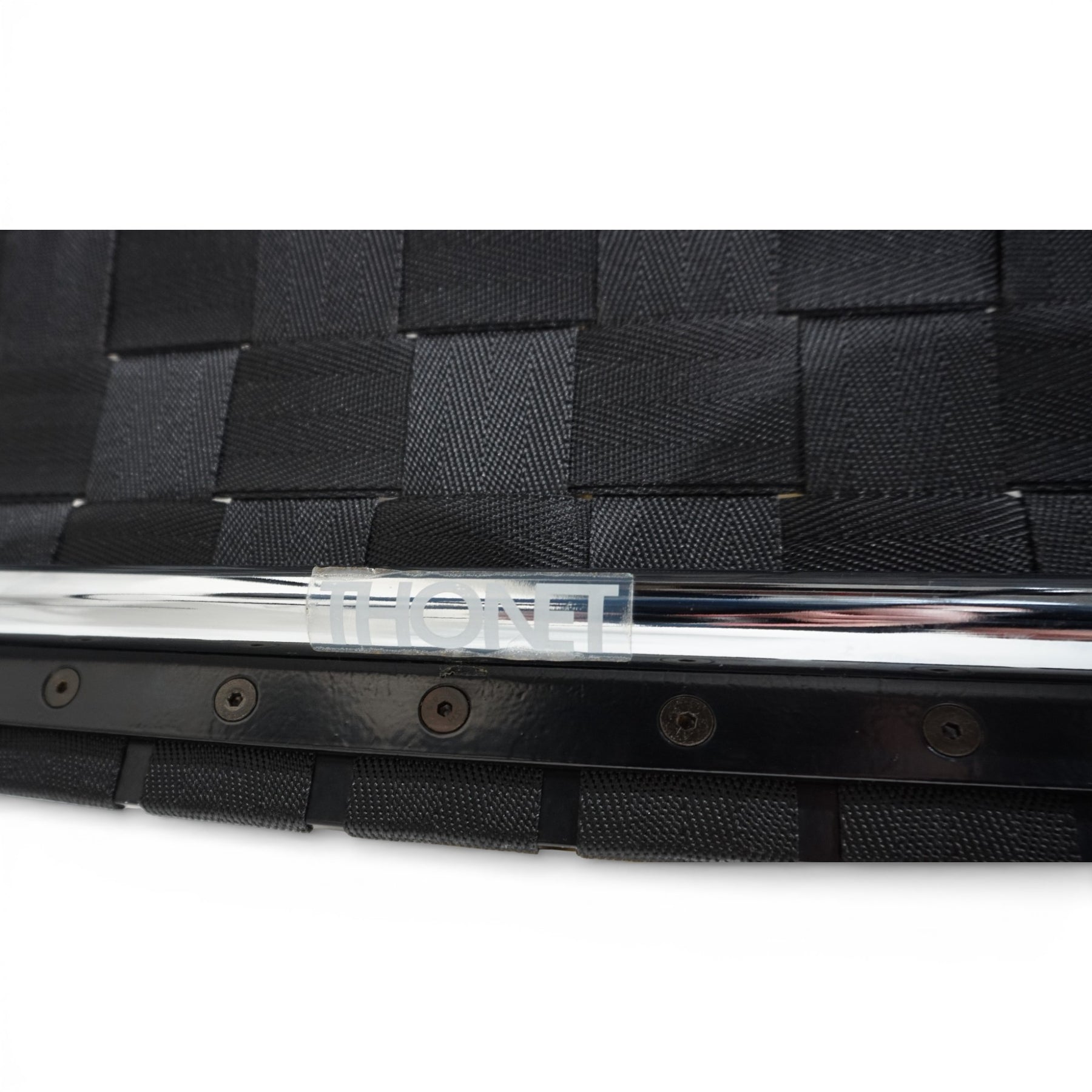 Ein 2er Set außergewöhnlicher Loungesessel von Thonet, welches in einem Top Zustand kommt. Die Materialkombination aus Holz, Chrom und Kunstfasergewebe und die dynamische Linienführung verleihen diesen Sesseln einen zeitlosen Ausdruck. Das schwarze Holz der gebogenen Rahmen zeigt minimale Gebrauchsspuren auf, das Chromgestell befindet sich in einem exzellenten Zustand. Die Sitzflächen und Rückenlehnen der Sessel sind in einem schwarzen Kunstgewebe ausgeführt, welches über einen Kunststoffrahmen gezogen ist. Sie weisen kaum Gebrauchsspuren auf. Die Breite der Sitzflächen und die gebogenen Armlehnen verleihen den Sesseln ein hervorragendes und bequemes Sitzgefühl.